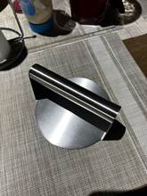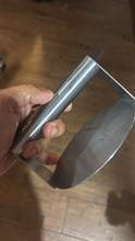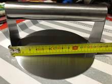 Good product. It looks like a thick plate, one millimeter thick, which is very good, with a diameter of 14cm and well polished, which can make a large hamburger. If you like them to come out very firm, this is the tool you need. Good quality steel and good finish. Recommended purchase.