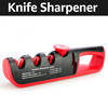 - Quick, safe, and fits all hands right or left-handed with an ergonomic handle; slip-resistant rubber bottom means your sharpener stays in place during use