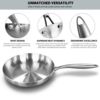 • Practical and Elegance. Tri-Ply Stainless Steel Nonstick Pan Combines Ergonomic cookware Design and superior features for optimal cooking performance. The rounded and encapsulated rim for drip free pouring and easy transfers, Rivet-free surface to eliminate food traps.